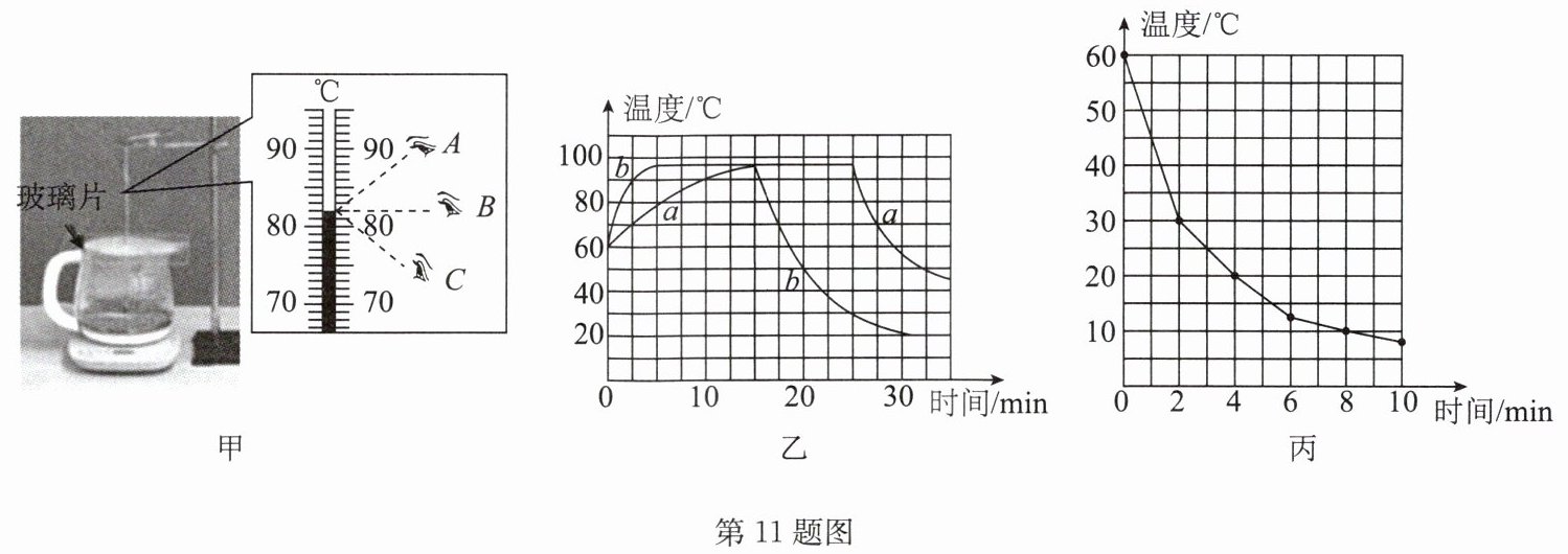 (1)图甲中温度计读数视线正确的是______(选填"A""B"或"C");此时温度计的示数为______℃;器材中玻璃片的主要作用是______.