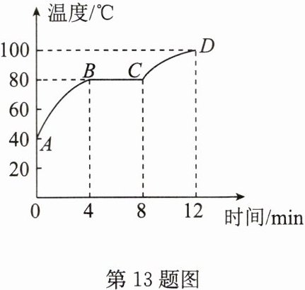 13. 小刚同学在探究某种物质熔化特点的实验中,根据实验数据画出了该物质熔化过程中温度随时间变化的图像.由图像可知,该物质是______(选填"晶体"或"非晶体"),其熔点是______℃,在熔化过程中温度______;在加热6min时,该物质处于______(选填"固态""液态"或"固液共存态").