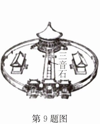 9.(2024·亭湖区二模)天坛公园有一个回音壁,回音壁的中心有个三音石,如图所示,站在上面拍手可能会听到三次回声,充分体现了我国劳动人民的聪明才智.听到的第三次声音和原声相比发生变化的是( )