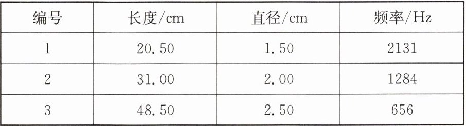 | 编号 | 长度/cm | 直径/cm | 频率/Hz |