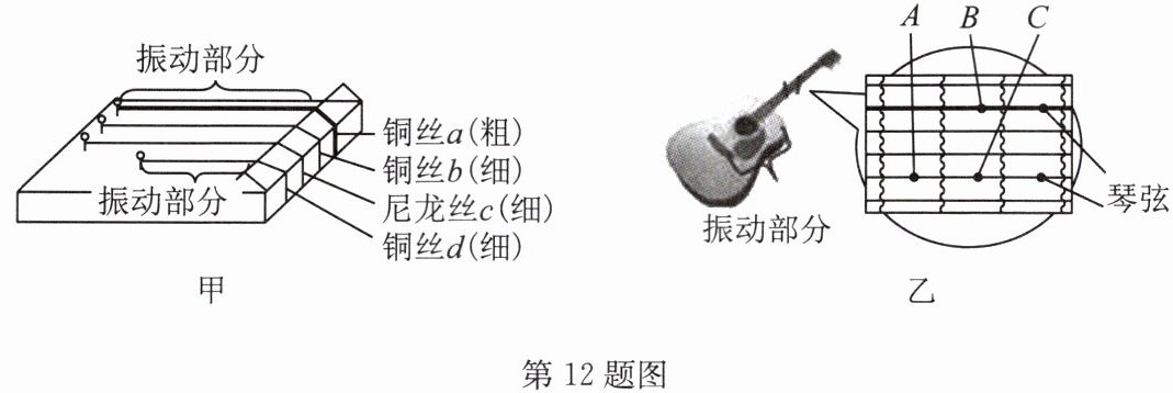 12.小明在吉他演奏中发现,琴弦发出的音调与弦线的长度、粗细和张力有关.于是他进行探究: