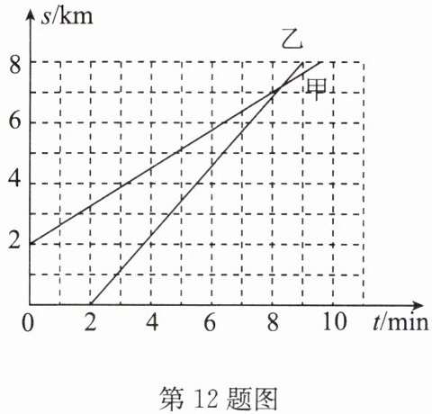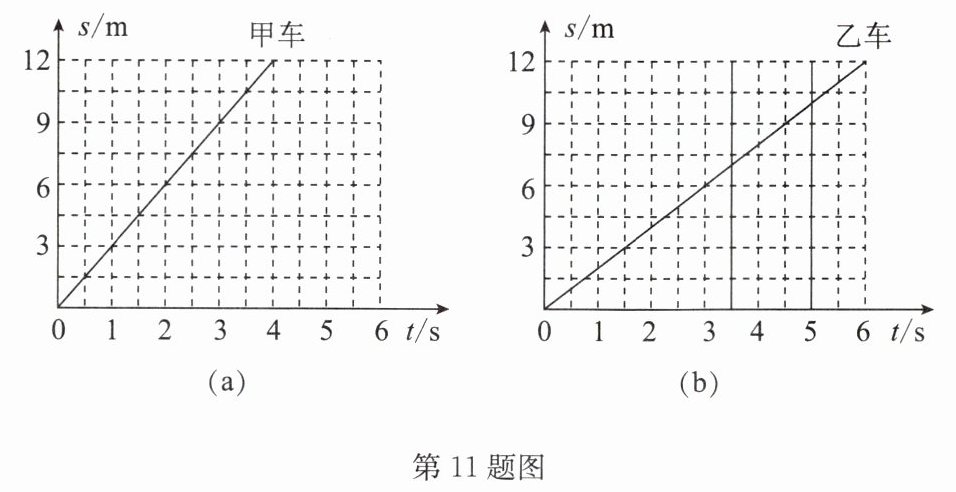 11.(2024·自贡)P、Q是同一直线上相距12m的两点,甲、乙两小车同时经过P点向Q点做直线运动,它们的s-t图像分别如图(a)(b)所示.则( )