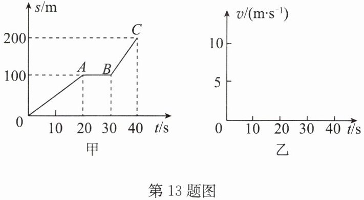 13.如图甲所示为汽车沿直线运动时路程一时间图像,图中s轴表示汽车离开出发点的路程.请在图乙中画出描述汽车在这段时间内运动的速度一时间图像.