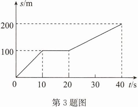 3. 如图所示是某物体在40s内沿直线运动的s-t图像.分析图像信息,前10s内物体通过的路程为______m;在20~40s内,该物体的运动状态为______(选填“静止”或“匀速直线运动”),在这40s内,该物体的平均速度为______m/s.