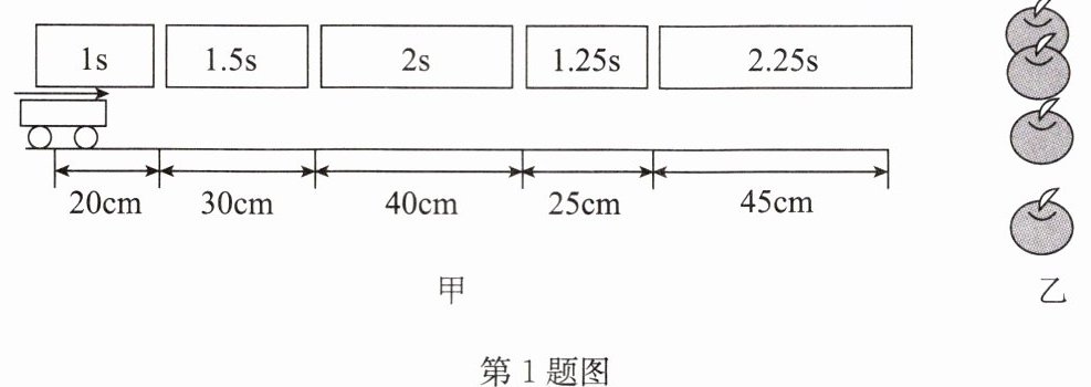 1. 观察图甲可知汽车做______直线运动,行驶速度是______;观察苹果下落时的频闪照片(图乙),可知苹果做______直线运动.