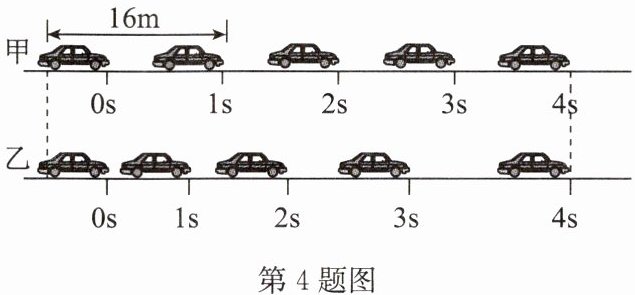 4. 如图记录了甲、乙两辆汽车在平直公路上同时自西向东行驶时的运动情况,下列说法正确的是( )