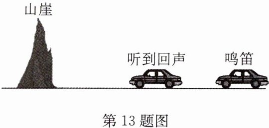 13. 如图,一辆汽车以72km/h的速度匀速驶向前方的山崖,鸣笛2.5s后听到回声,已知空气中声音的传播速度为340m/s,求: