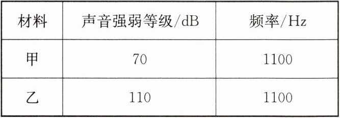15.如图所示,监测器在同一地点,测得同一声源发出相同的声音在相同厚度不同隔声材料包裹后传出声音特性如下表.甲、乙材料相比( )