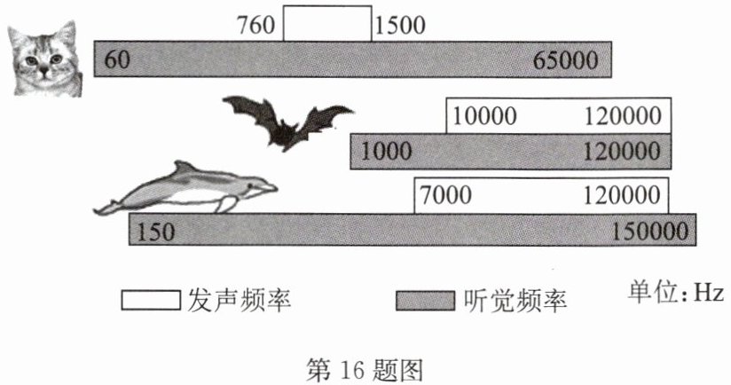 16.部分动物的发声频率和听觉频率如图所示,则下列说法正确的是 ( )