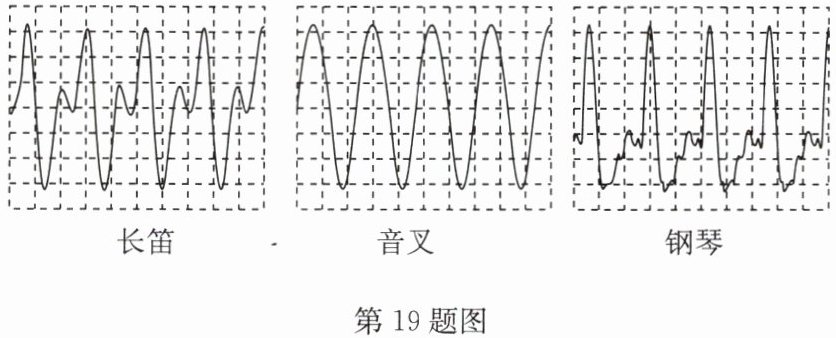 19. 如图所示分别是长笛、音叉、钢琴发出的C调1(do)的波形,比较它们的波形可知( )