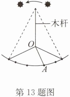 (1)光在同一均匀介质中是沿直线传播的,当光照在竖直的木杆上,就会在地面上形成一个黑暗的区域,这个黑暗的区域就是木杆的影子,OA是最短的影子,此时应该是正午时间,我国处于北半球,影子就应该是南北方向的,OA指示的是正北方向,AO指示的是正南方向.