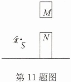 11. 画出人眼在点S处通过门板狭缝MN看到的室外范围.