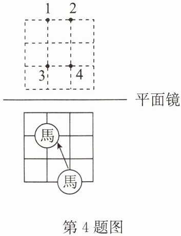 4. 中国象棋历史悠久.如图,在竖直立着的平面镜前水平放置一个九格的棋盘,将一颗棋子“馬”按箭头方向移动,则平面镜中所显示的棋子“馬”,其移动的路径是( )