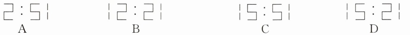 11. 某同学面对平面镜,看到身后电子显示屏上显示的时间是|︰|,则实际时间是( )