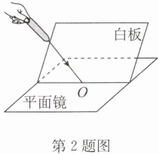 2. (2024·东台期末)利用如图所示实验装置探究光的反射定律。平面镜水平放置,将一束光斜射到平面镜上,在入射点O放置白板并调整位置,使入射光线和反射光线同时呈现在 。测得此时白板和镜面成90°角,说明白板与镜面的位置关系是相互 ,实验表明:光反射时,反射光线、入射光线、法线在 。