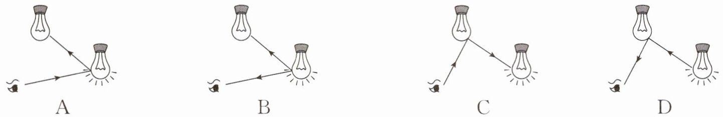 4. 黑暗的房间里有两盏电灯,只有一盏灯点亮,但人能看到未点亮的电灯。以下对于“看到未点亮的电灯”所画的光路图正确的是( )