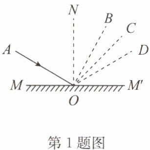 1. 如图所示,M'M为平面镜,AO为入射光线,ON为法线,入射角∠AON等于60°,已知∠NOB等于30°,∠NOC等于45°,∠NOD等于60°。