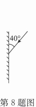 8. 如图,一束与镜面成40°角的光线斜射到平面镜上,则入射角为 ;若将入射光线沿入射点靠近平面镜旋转10°,此时反射光线和入射光线的夹角为 。若入射光线与镜面垂直,则反射角为 。
