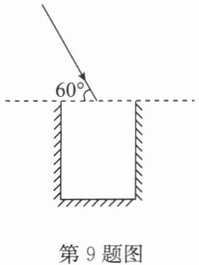 9. 如图所示,太阳光与水平面成60°角,要利用平面镜使太阳光沿竖直方向照亮井底,则入射角是 °,平面镜与水平面所成的锐角是 °。