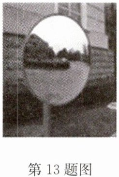 13. (2024·阜宁期末)在居民小区或马路边能看到如图所示的“镜子”,这是人们利用光的______定律,在路的急拐弯处装上的______(选填“平面镜”“凸面镜”或“凹面镜”),对光具有______(选填“发散”或“会聚”)作用。