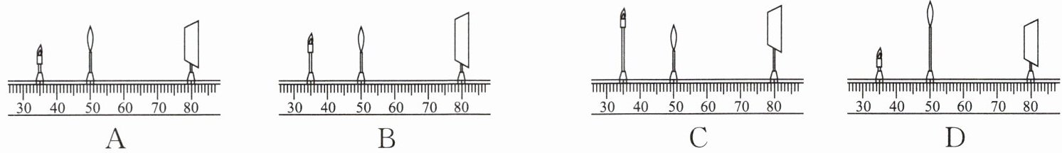 11. 在“探究凸透镜成像的规律”实验中,首先需调整蜡烛、凸透镜和光屏,使实验时烛焰和光屏的中心位于凸透镜的主光轴上,以下情形属于已经调好的是 ( )