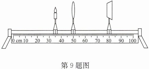 9. 某同学用蜡烛、凸透镜、光屏、光具座等器材做“探究凸透镜成像规律”的实验.