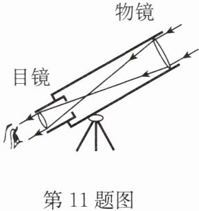 11. (2024·卓宁县期末)某跨学科实践小组通过纯手工打磨镜片自制了望远镜,该望远镜不仅可以看到8亿公里外的木星,甚至能清晰地看到木星表面的斑纹,如图是该望远镜内部结构及光路示意图。下列关于该自制望远镜的说法正确的是( )