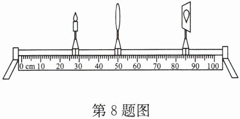 8. 小梦同学在“探究凸透镜成像的规律”实验中,将凸透镜固定,当蜡烛和光屏的位置如图所示时,恰能在光屏上成一个清晰的像. 下列说法正确的是( )