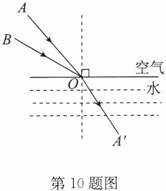 10. (2024·盐都区模拟)图中,OA'是入射光线 AO 的折射光线,画出入射光线 BO 的折射光线 OB'的大致位置.