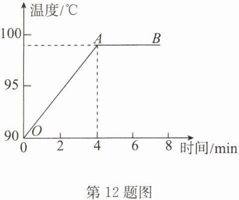12. 如图所示是水沸腾前后温度随时间变化的图像. 下列对图像理解正确的是( )