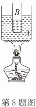8. 小明用图中的小试管B装有水,悬放在烧杯A的水中,当A中水沸腾时,B中的水______沸腾,理由是______,请你写出一种能使B中的水沸腾的方法:______.