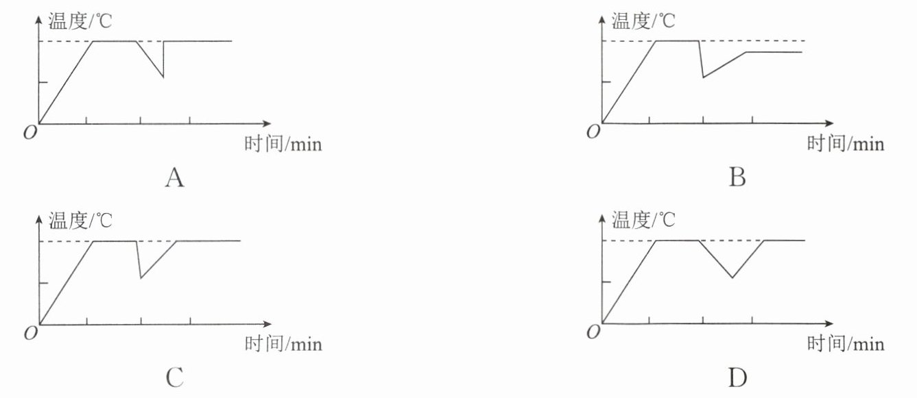 15. 周末,小华在家中烧开水煮饺子. 当水烧开准备煮饺子时,妈妈提醒他锅里的水量太少了,于是,小华又往锅里迅速加了一大碗冷水(水量比锅里的少). 下面最能大致反映整个烧水过程中水温随着时间变化的图像是( )