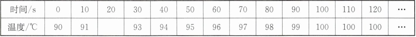 |温度/℃|90|91|______|93|94|95|96|97|98|99|100|100|100|…|