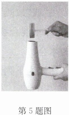 5. (2024·扬州期末)如图所示,密封的锤形玻璃泡内有少量碘颗粒,碘的熔点约为114℃。用电吹风热风挡对玻璃泡加热,温度约为60℃,发现玻璃泡内碘颗粒逐渐消失,同时出现紫红色碘蒸气,这是______(填物态变化名称,下同)过程,需要______热量。停止加热,冷却后玻璃泡内又出现碘颗粒,这是______过程,此过程中没有看到液态碘,是因为______。