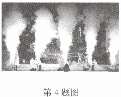 4. 如图所示,在一些大型演出中,人们会在舞台上播撒干冰(固态二氧化碳),制造出“云雾缭绕”的场景。由于干冰发生______变成气态,大量吸收空气中的热量,使得空气中的水蒸气发生______而变成了液态的白雾。(均填物态变化名称)