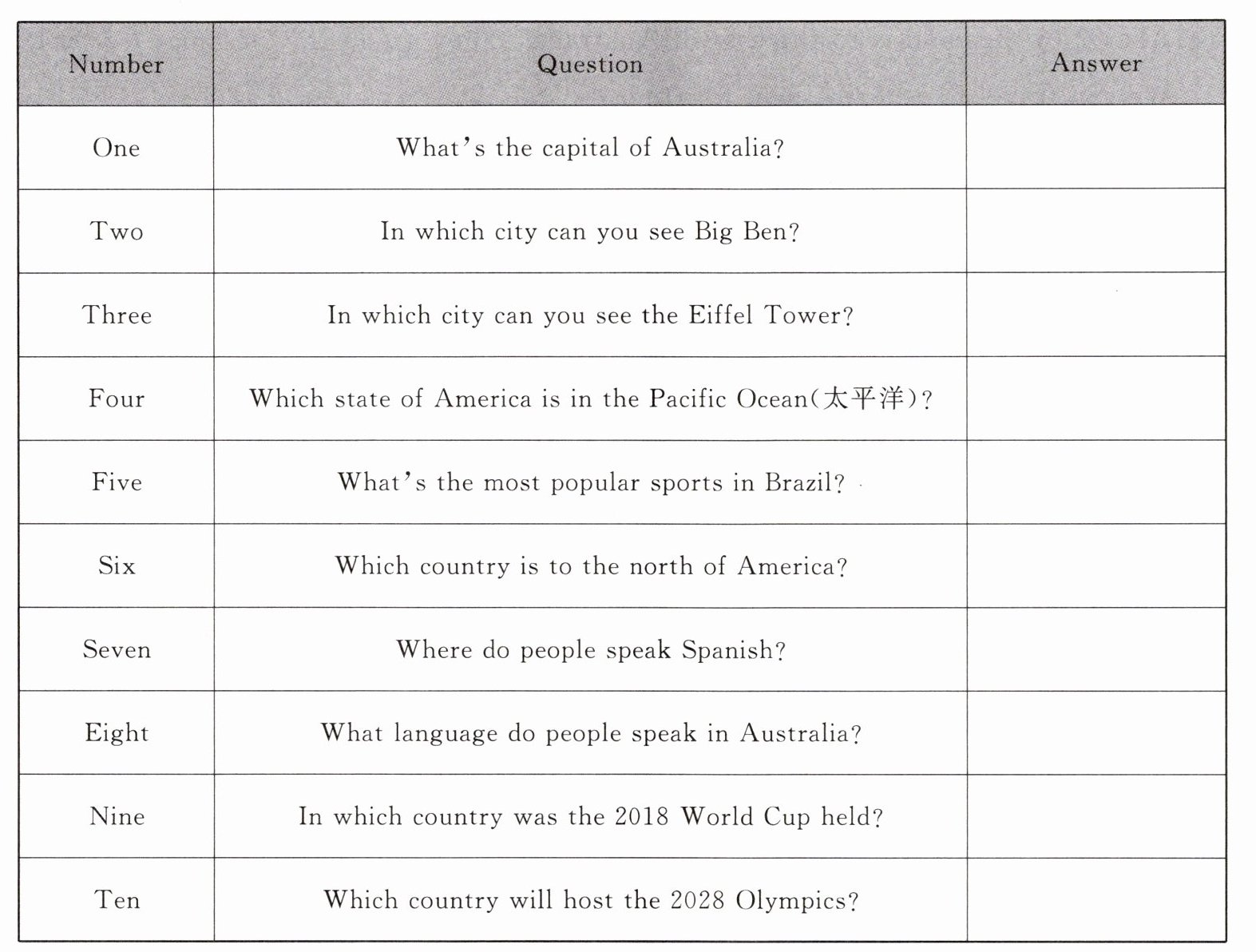 1. No,he doesn't. 2. Because Tong Xin has a pen pal from Australia. 3. Canberra.