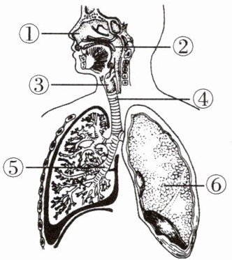 15. 下图是呼吸系统示意图,请据图回答下列问题。