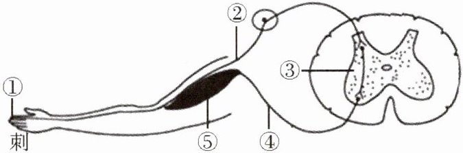 6. 如果我们不小心被仙人掌上的刺扎到手,会产生缩手反射。如图所示是此反射弧的结构模式图,下列叙述错误的是(