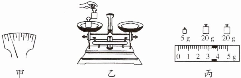 4. 天平再次平衡后,所用砝码和游码位置如图丙所示,那么小明所称量物体的质量是
