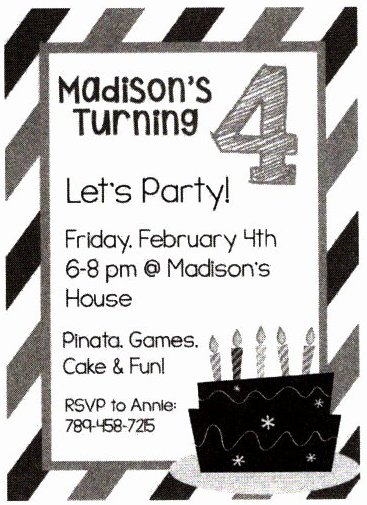 【解析】:本题可根据图片中的关键信息来判断聚会的类型。图片中明确显示“Madison's Turning 4”,意思是“Madison 四岁了”,由此可知这是一个生日聚会。