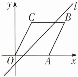 3. 如图,在平面直角坐标系中, $ □ OABC $ 的顶点 $ A $ 在 $ x $ 轴上,顶点 $ B $ 的坐标为 $ (6,4) $. 若直线 $ l $ 经过点 $ (1,0) $,且将 $ □ OABC $ 分割成面积相等的两部分,则直线 $ l $ 对应的函数表达式是(