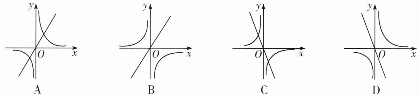 2. 函数 $ y = 2 x $ 与函数 $ y = \frac { - 1 } { x } $ 在同一坐标系中的大致图象是 (