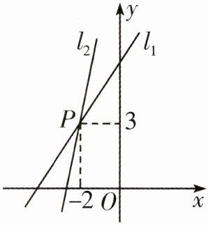 1. 如图,如果一次函数$y = k_{1}x + b_{1}的图象l_{1}与y = k_{2}x + b_{2}的图象l_{2}相交于点P$,则方程组$\begin{cases}y = k_{1}x + b_{1},\\y = k_{2}x + b_{2}\end{cases} $的解是(