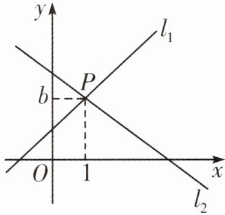 1. 如图,直线$l_{1}:y = x + 1与直线l_{2}:y = mx + n相交于点P(1,b)$。