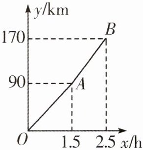 “五一”期间,申老师一家自驾游去了离家 170 km 的某地,他们离家的距离 $ y(\text{km}) $ 与汽车行驶时间 $ x(\text{h}) $ 之间的函数图象如图所示.