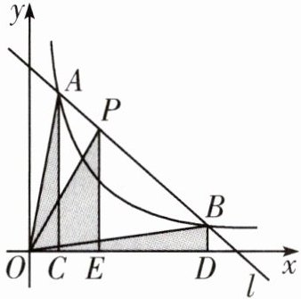 3. 如图,直线$l和双曲线y = \frac {k}{x}(k > 0)交于A$,$B$两点,$P是线段AB$上的点(不与点$A$,$B$重合),过点$A$,$B$,$P分别向x$轴作垂线,垂足分别是$C$,$D$,$E$,连接$OA$,$OB$,$OP$,设$\triangle AOC的面积是S_1$,$\triangle BOD的面积是S_2$,$\triangle POE的面积是S_3$,则(
