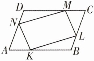 1. 如图,在□ABCD的各边AB,BC,CD,DA上,分别取点K,L,M,N,使AK=CM,BL=DN,那么四边形KLMN是平行四边形吗?请说明理由.