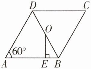 1. 如图,在菱形 $ABCD$ 中,$\angle A = 60^{\circ}$,$AB = 4$,$O$ 为对角线 $BD$ 的中点,过 $O$ 点作 $OE \perp AB$,垂足为 $E$. 求: