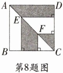 8. 如上页图,正方形ABCD的边长为5cm,则图中阴影部分的面积为______$cm^{2}$。