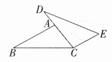 10. 如图,$\triangle ABC\cong \triangle CDE$,点C,A,D在同一条直线上。